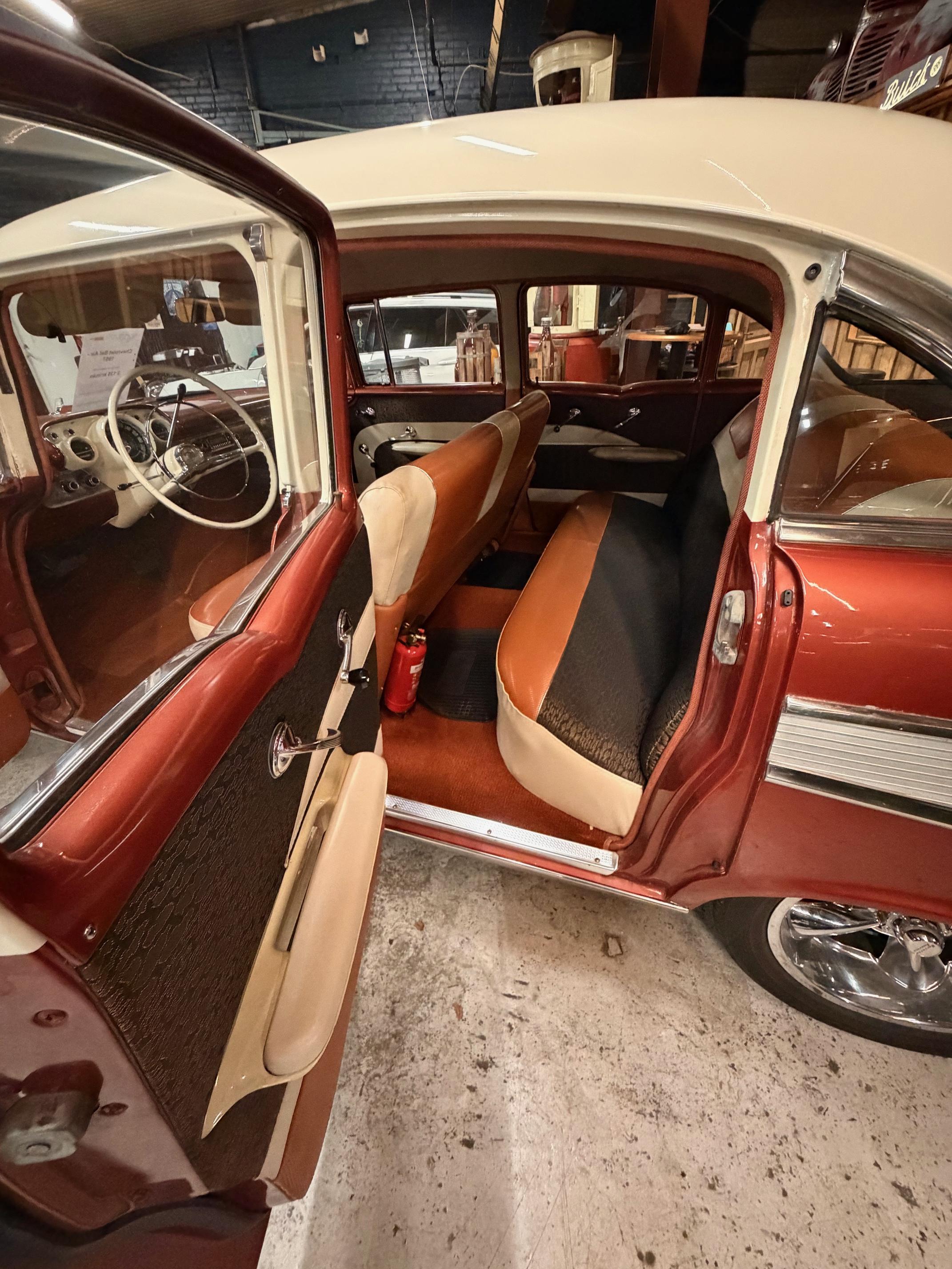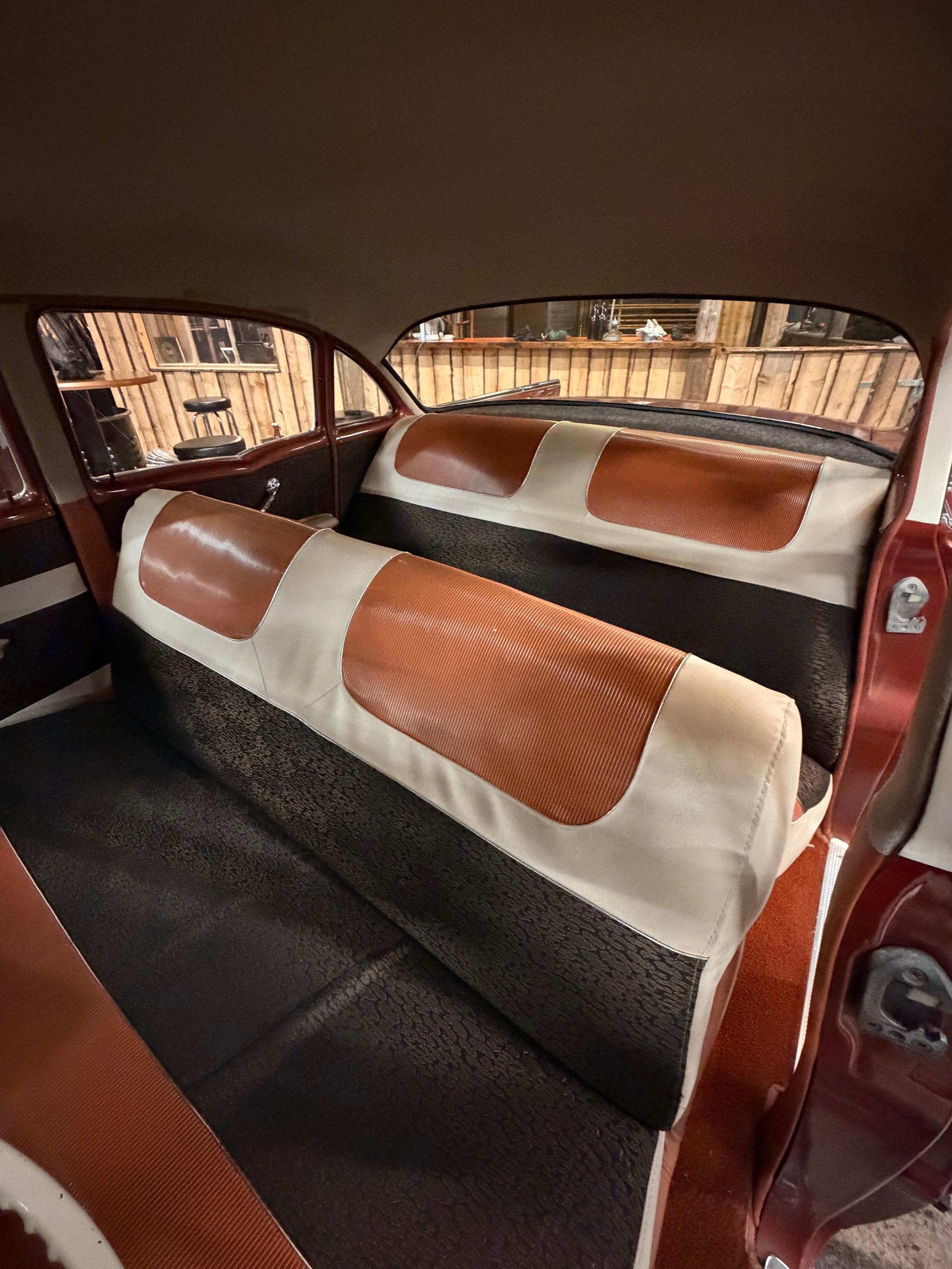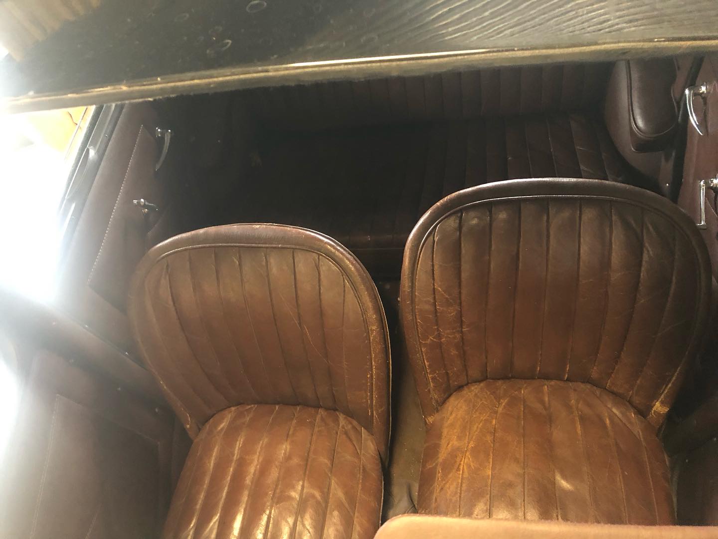 Karossen är i ett hyfsat gott skick och inredningen känns som en möbelgrupp från Chesterfield.