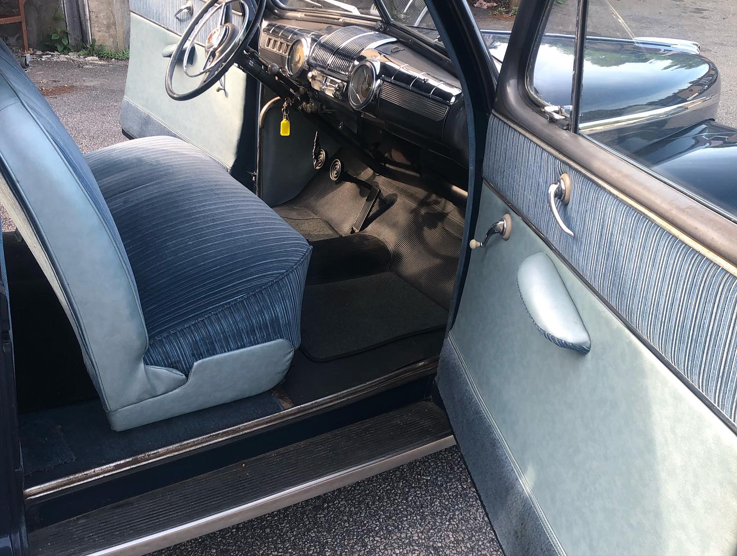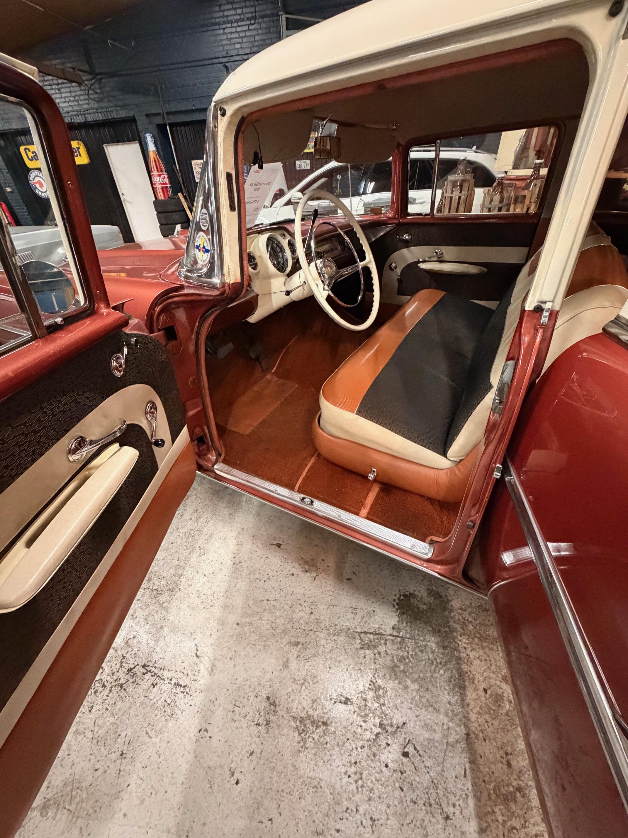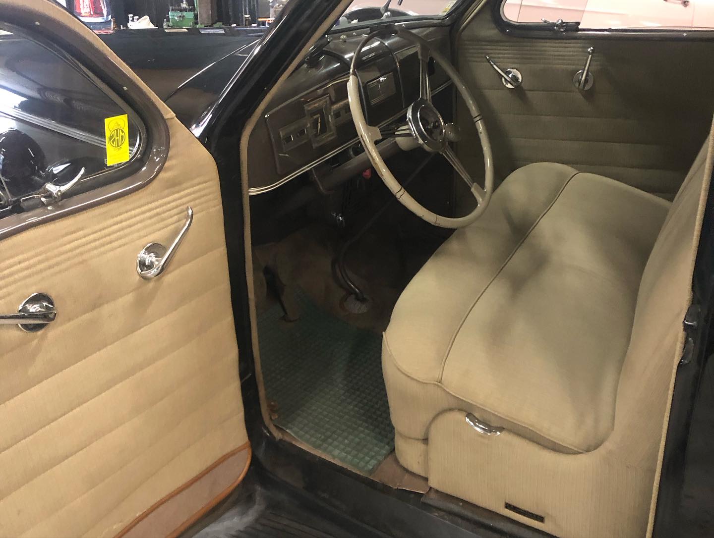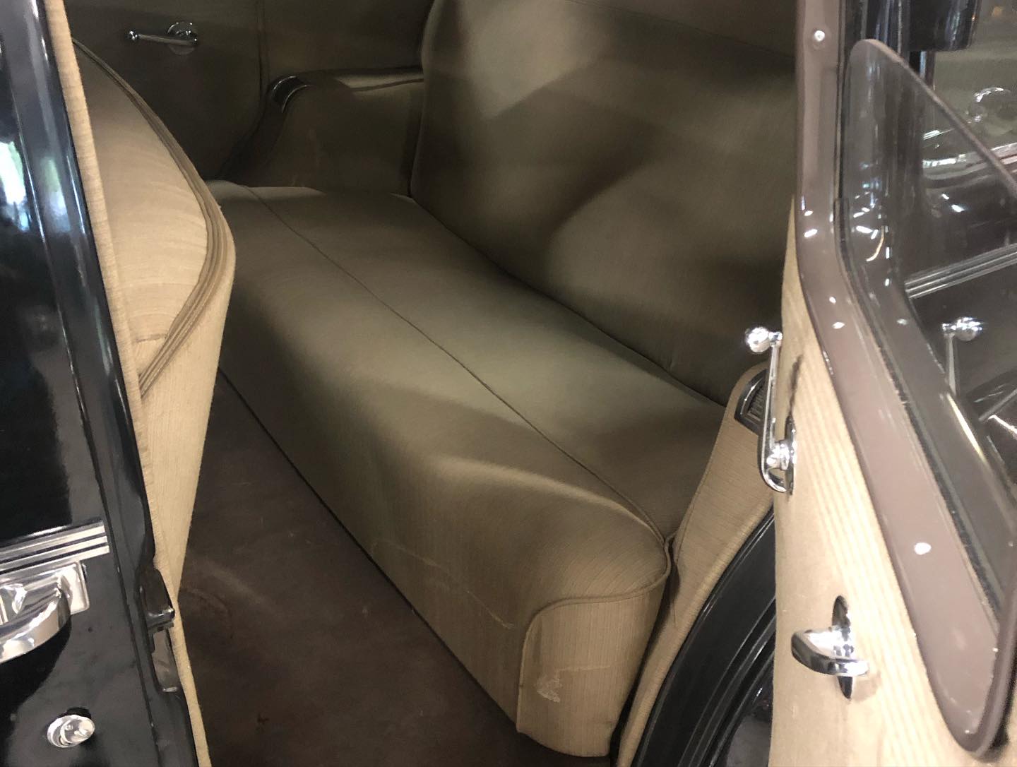 Karossen är i ett hyfsat gott skick och inredningen känns som en möbelgrupp från Chesterfield.