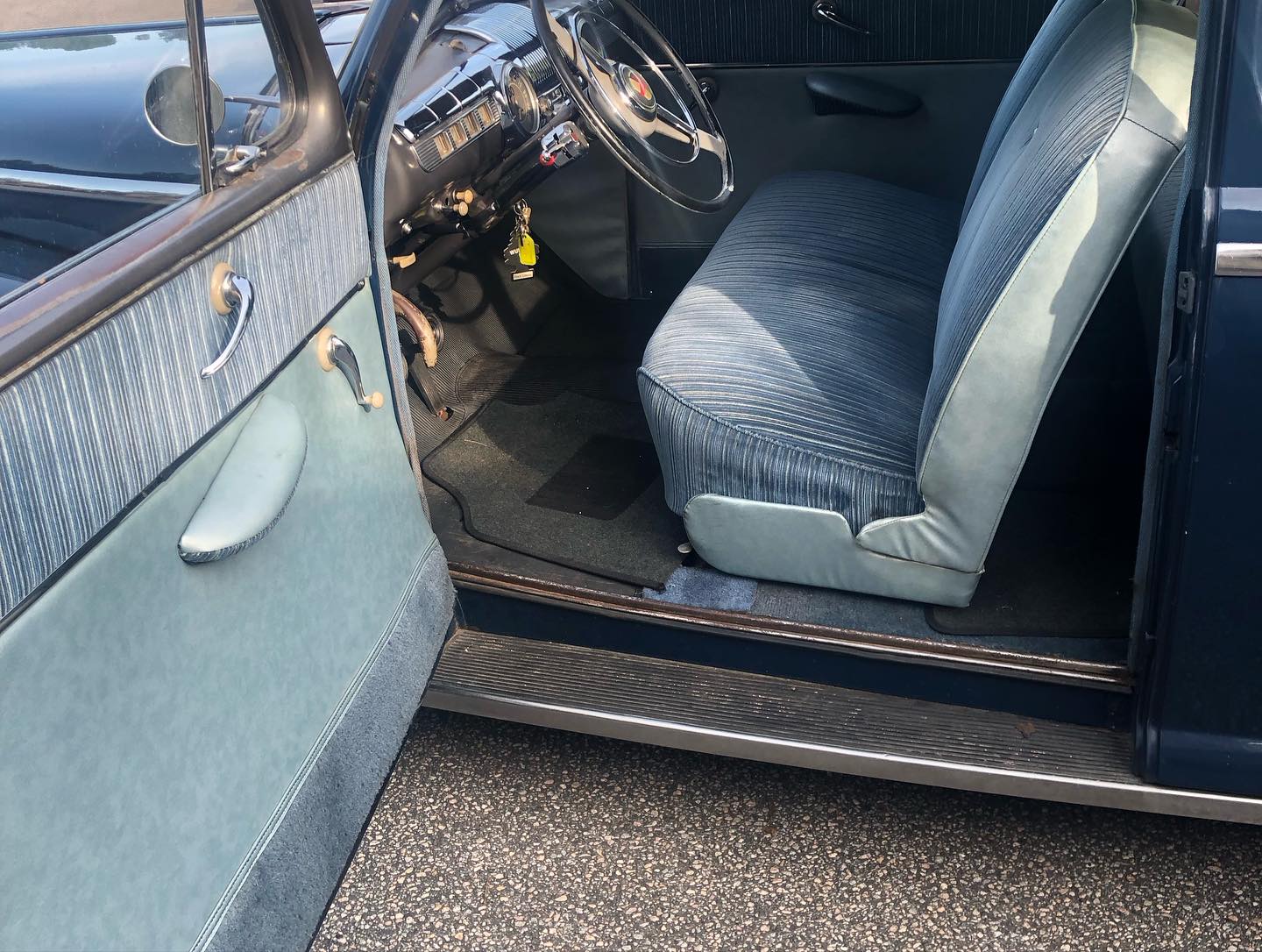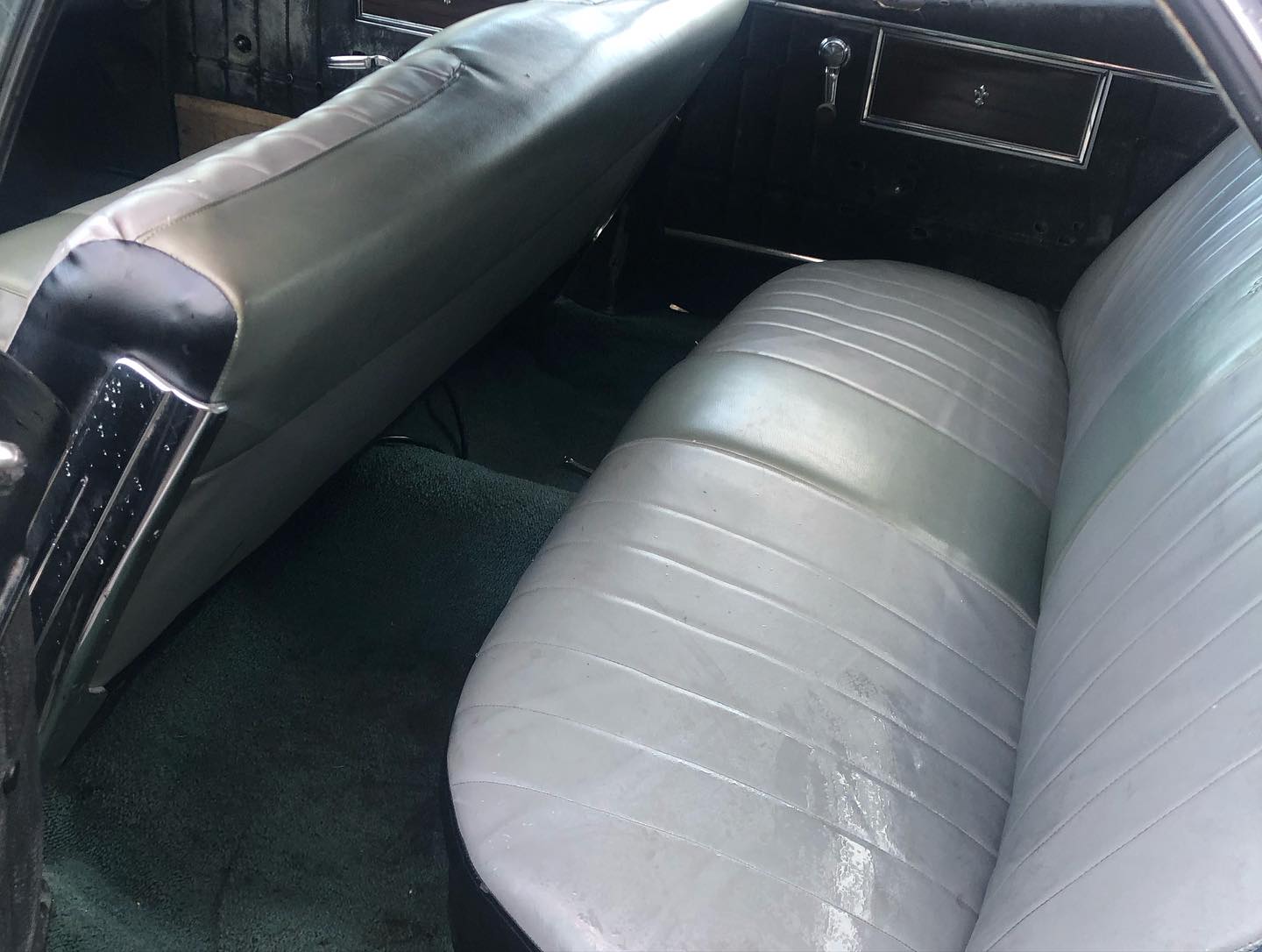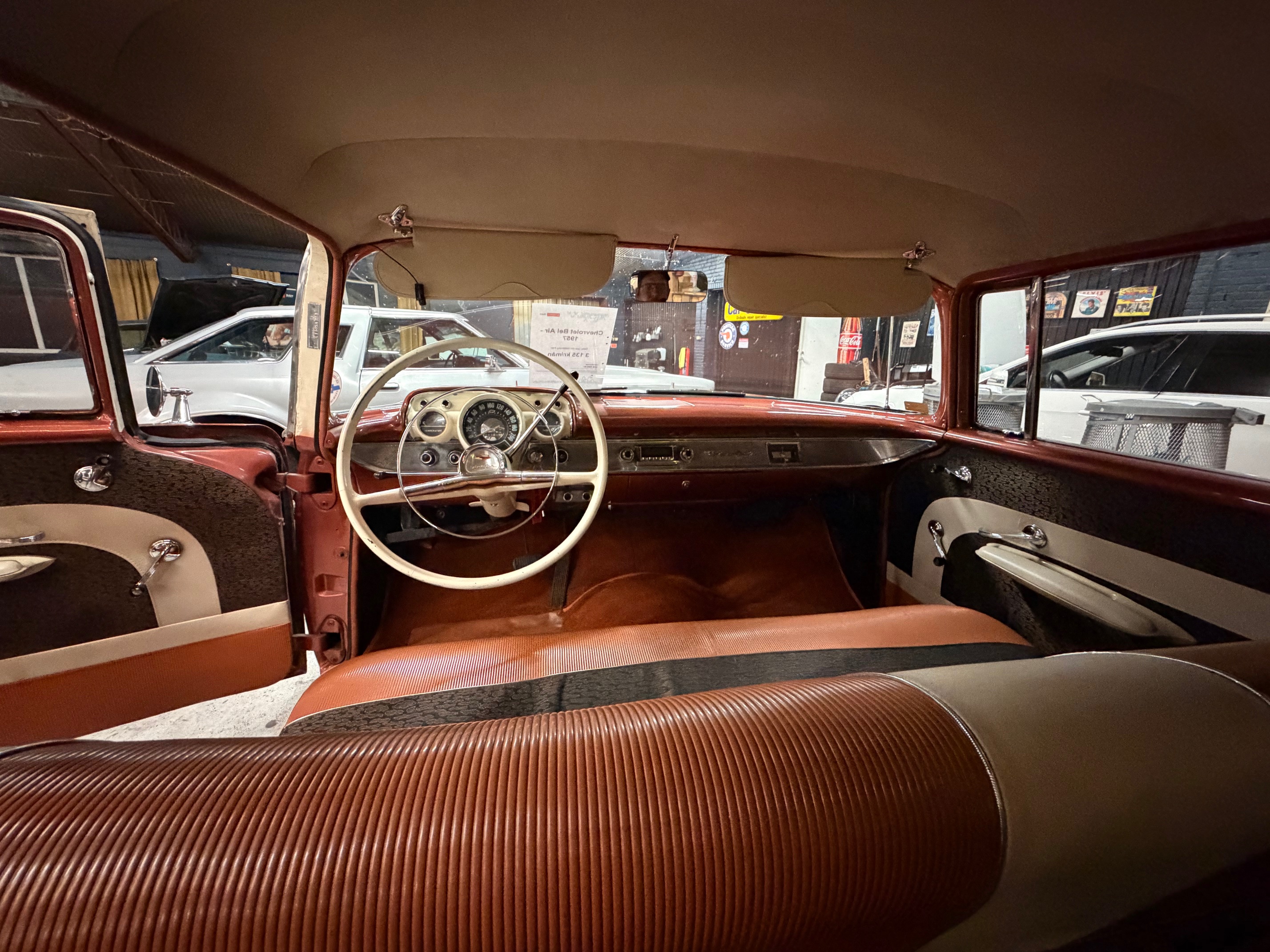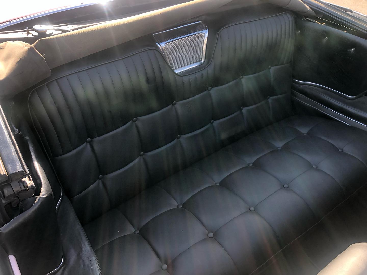 Karossen är i ett hyfsat gott skick och inredningen känns som en möbelgrupp från Chesterfield.